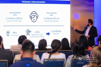 La ministra de Turismo, Morena Valdez, acompañó a un grupo de empresarios salvadoreños y hondureños del sector turístico en una...