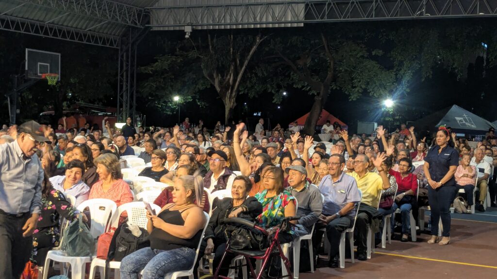 La cita reunió a más de un millar de pensionados en el Complejo Polideportivo de la Universidad Centroamericana José Simeón Cañas (UCA), donde la música y el baile marcaron el ritmo de una noche pensada exclusivamente para quienes forman parte de la comunidad Crecer. La Orquesta Premier fue la encargada de animar la velada, que combinó entretenimiento con un mensaje de reconocimiento a la trayectoria y aporte de los pensionados.