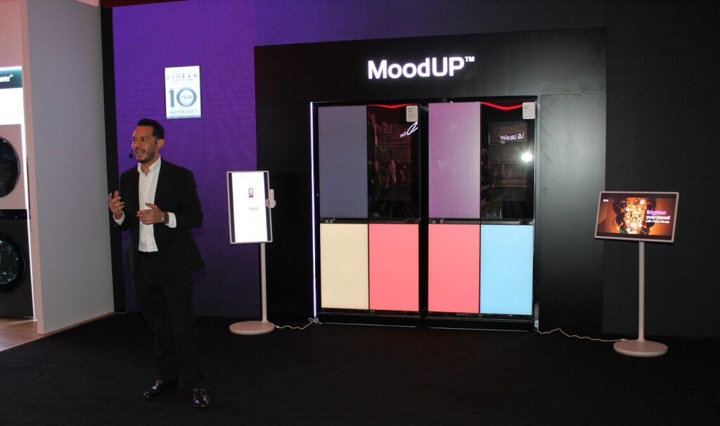 El refrigerador MoodUP de LG es otra innovación destacada, diseñado para transformar por completo la experiencia en el hogar. Con tecnología de iluminación y sonido, este refrigerador crea una atmósfera envolvente que mejora el estado de ánimo del usuario cada vez que se abre la puerta.