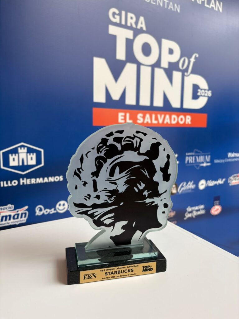 Starbucks El Salvador alcanzó el primer lugar como la marca de cafeterías más recordada por los consumidores, según el estudio Top of Mind 2026.